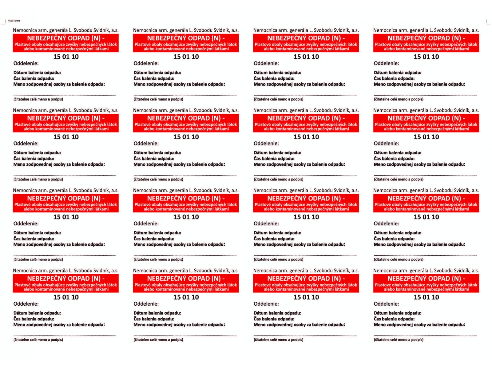 Etiketa - NEBEZPEČNÝ ODPAD Plastové obaly 15 01 10