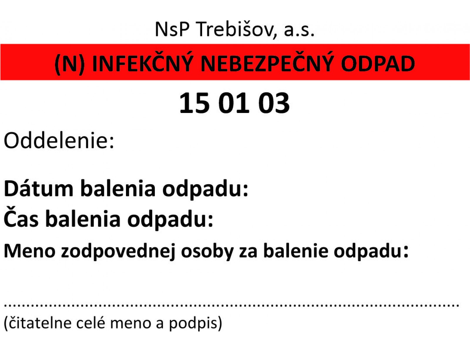 • Etiketa - Infekčný nebezpečný odpad 15 01 03 Trebišov